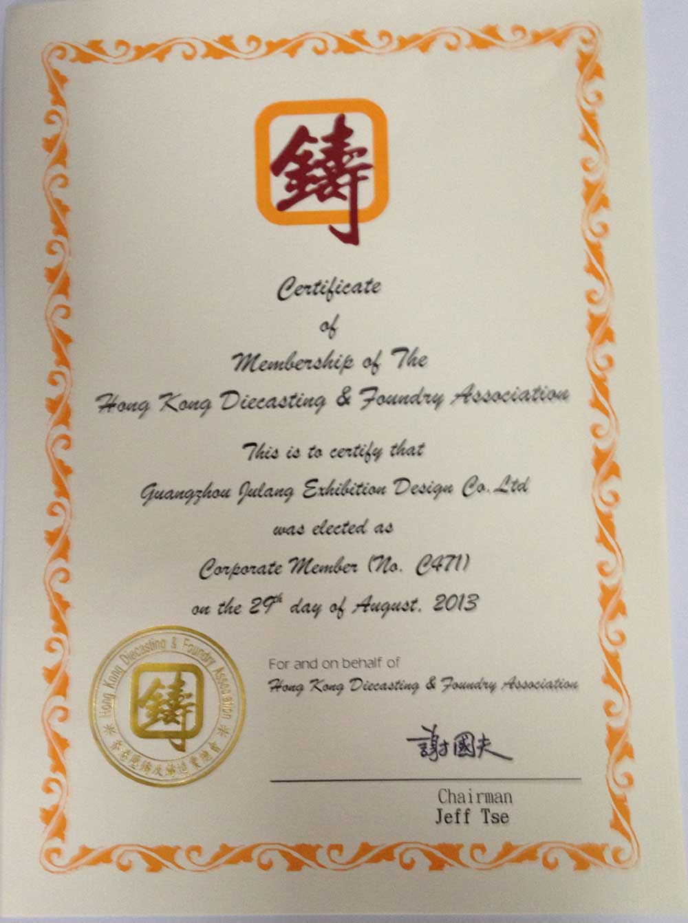 廣州巨浪展覽策劃有限公司加入香港壓鑄鑄造總會會員